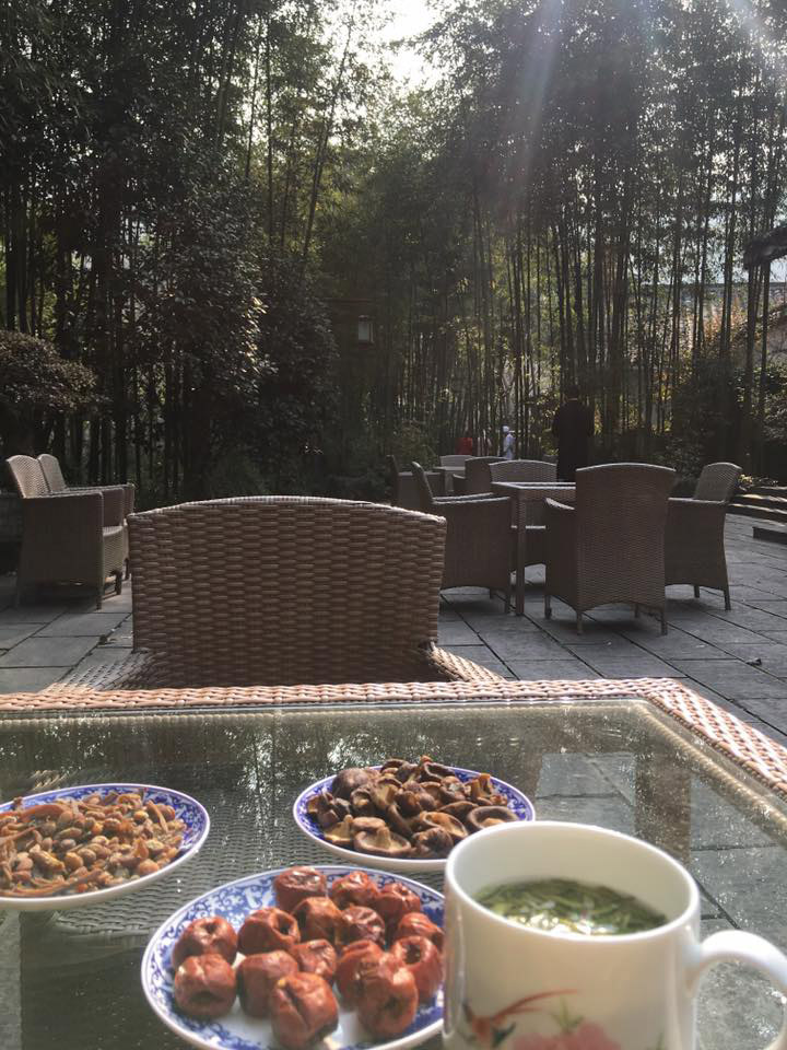 「龍井草堂」は杭州 蕭山国際空港から車で約45分、中国4大銘茶の龍井(ロンジン)茶で有名な龍井地区に佇むレストランです。「龍井草堂」へ向かう道中、一面に広がる茶畑の景色は美しく心癒されます。杭州は都会だけれど自然豊か、お茶どころだけあってお水が美味しい。中国三大名泉の一つ『虎跑泉』と呼ばれる名水が湧き出ています。